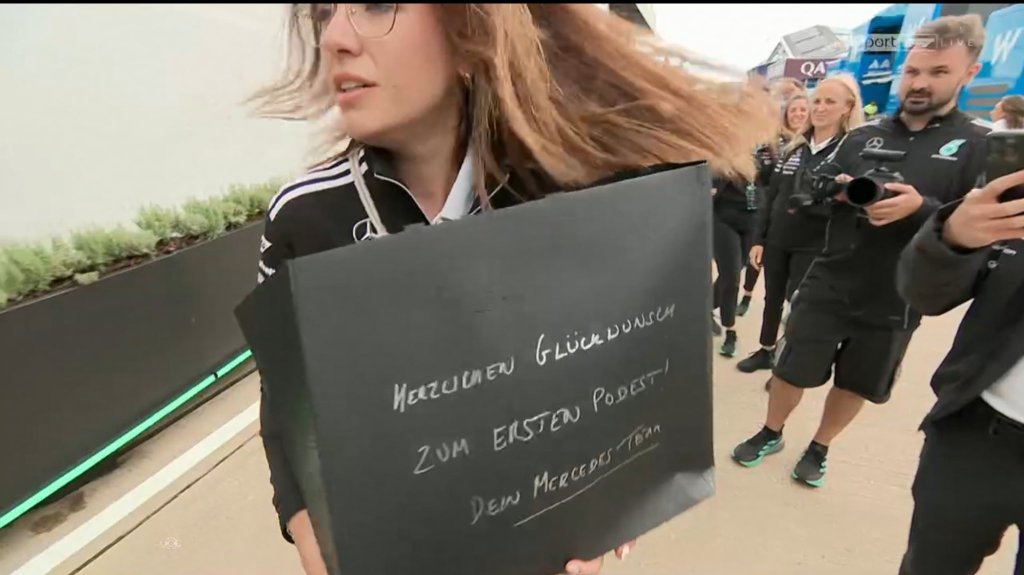 Especially Mercedes as they brought a bag filled with champagne with the message: “Congratulations on the first podium – your Mercedes team”